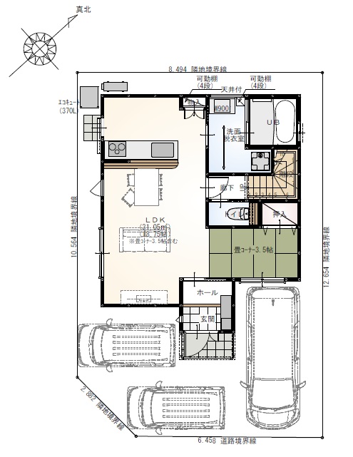 LDK 18.75帖※畳コーナー3.5帖含む 洋5.75帖・4.5・4.5帖 |